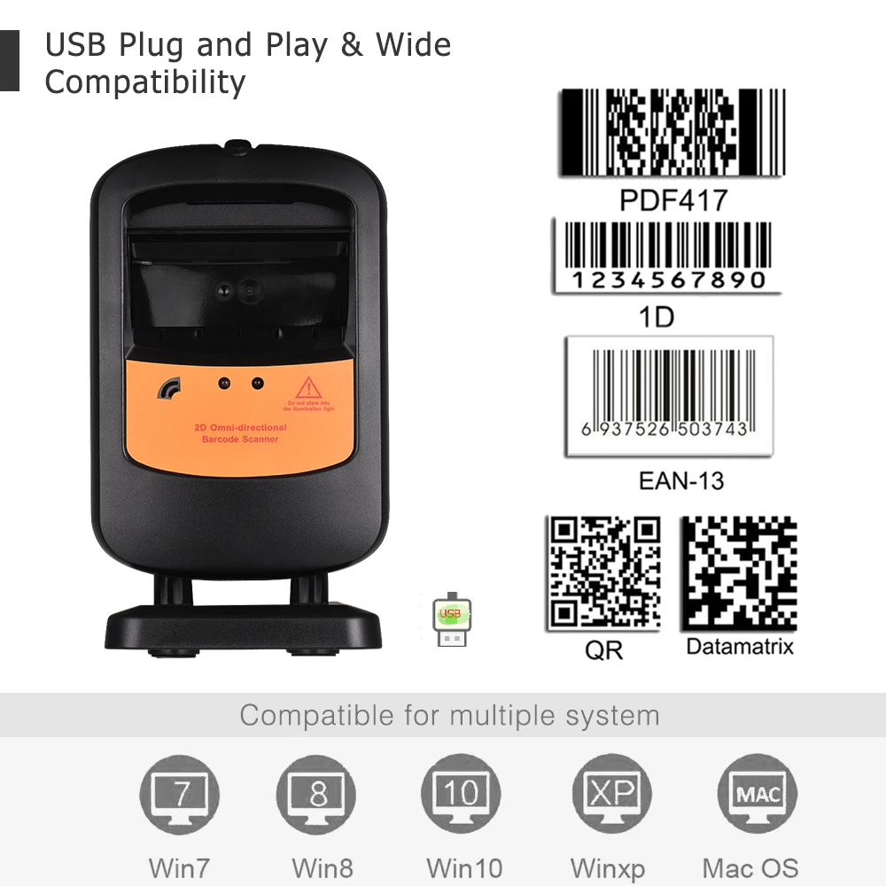 Code Available: this USB wired barcode scanner can easily scan 2D/ 1D codes on paper/film/label/mobile phones or computer displays.
