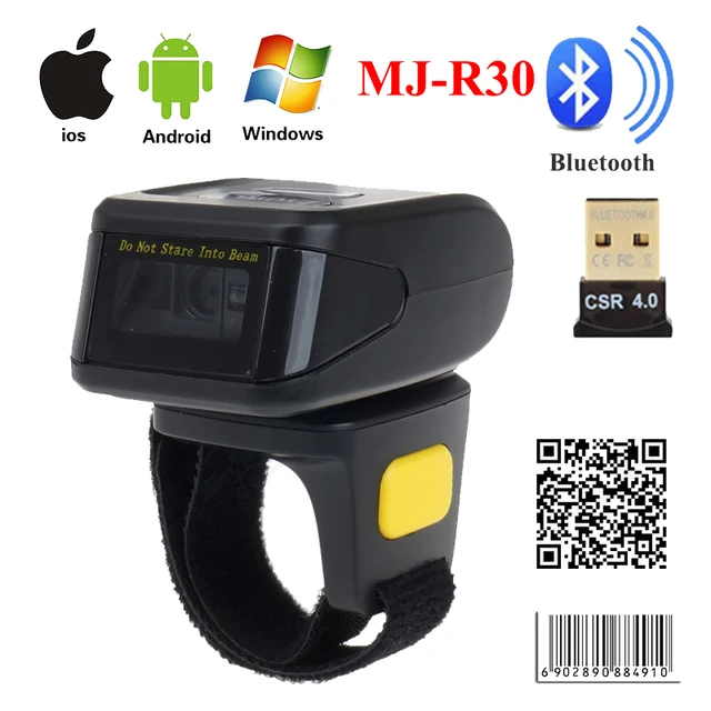 MJ-R30 Portable Bluetooth Ring 2D Scanner Barcode Reader For IOS Android Windows PDF417 DM QR Code 2D Wireless Scanner