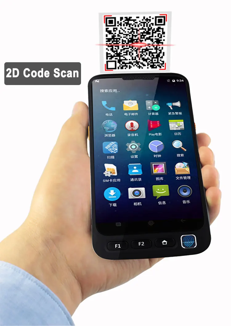 PDA handheld terminal print scanning QR code barcode machine, 5.0M megapixel camera multi-language support Google Play store compact portable ergonomic design, with wristband Safe OS (Android 7.0) highly optimized Android operating system high capacity 5000mA Large-capacity battery that meets key requirements Pogo Pin interface for easy charging, optional charging base Industrial rugged design, waterproof and protection rating (IP67)