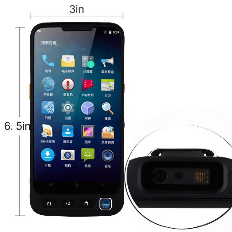 Product Type PDA Handheld Terminal Size: 6.5x3x0.6in CPU:MTK6753 4G ,8 CORE Storage:Standard ROM+RAM,16GB+2GB Display:5.0 inches (IPS screen 1280*720 resolution) with backlight and capacitive touch screen Network standard: Dual card 4G dual standby multimode mode: 1. GSM:B5/850;B8/900;B3/1800;B2/1900; CDMA 1X 2. 3G:WCDMA B1/2100;B2/1900;B5/850;B8/900; 3G:CDMA2000/EVDO 3G:TD/SCDMA 3. FDD-LTE,B1/2100;B3/1800;B7/2600;B20/800; 4. TDD: B38/B39/B40/B41 Bluetooth:BT4.0+EDR; Support:SDAP, HSP, HFP, AVRCP, A2DP, OPP, PBAP。 WiFi:Support 2.4/5GHz A/B/G/N/dual-band Wi-Fi Radio:Support, earphone with antenna GPS:GPS,Beidou, GLONASS SCAN:Zebra SE 4710 2D Scan head. Honeywell N6603 Scan head: Scan frame rate: 60 times / sec Scanning distance: 584MM under normal visible light source, 100MM in dark environment Scan code type: Linear: UPC/EAN/JAN, GS1 DataBar, Code 39, Code 128, Code 32, Code 93, Codabar/NW7, Interleaved 2 of 5, Code 2 of 5, Matrix 2 of 5, MSI, Telepen, Trioptic, China Post 2D Stacked: PDF417, MicroPDF417, GS1 Composite 2D Matrix: Aztec Code, Data Matrix, QR Code, Micro QR Code, MaxiCode, Han Xin Code Postal: Intelligent Mail Barcode, Postal-4i, Australian Post, British Post, Canadian Post, Japanese Post, Netherlands (KIX) Post, Postnet, Planet Code OCR Option: OCR-A, OCR-B, E13B (MICR) USB interface:TYPE-C Camera:Rear 800AF pixel camera; Card slot:Micro dual card dual standby; support T card expansion, maximum support 32GB OS:Android7.0 native system, you can register your GOOGLE account UI interface:According to customer requirements Audio system:Full-duplex synchronous audio recording and recording playback system; Audio codec format: AMR, MIDI, MP3, AAC, AAC+ Built-in large volume speaker; Mike recording under working conditions G.711/RawPCM/QCELP/EVRC/-B/-WB/ AMR-NB/-WB/GSM-EFR/-FH/-HR AAC+/Eaac/AMR-NB/-WB/G.711/WMA9/10 Pro NFC:Support 14443A Topza,14443A MIFARE UL,JIS 6319-4 Sony Felica,14443A/B NXP DESFire Video encoding format:3gp/H.265/MPEG4 H.265/MPEG-4/VP8/H.265 Headset:3.5mm Indicator light:Support three colors, red, green, blue Button:4 shortcut function buttons on the front, 5 sides: “Volume + -” Left and right double scan button, power button battery:4000mAh, 3.8V battery, high voltage 4.35V Extension port:RFID expansion interface, RS232 reserved at the bottom
