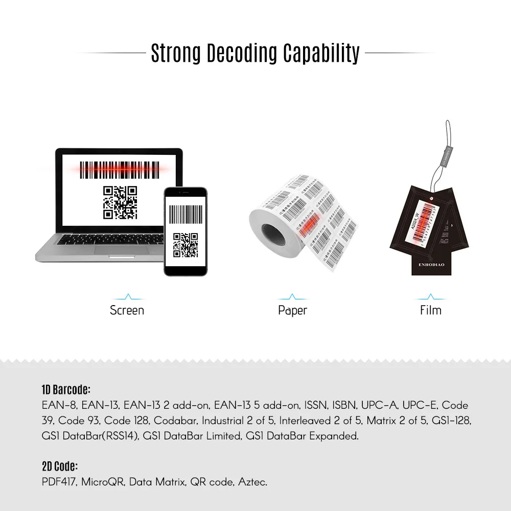 Aibecy Barcode Scanner Barcode Reader 433MHz Wireless 1D 2D Auto Image Barcode Scanner Handheld QR code PDF417 Bar Code Reader