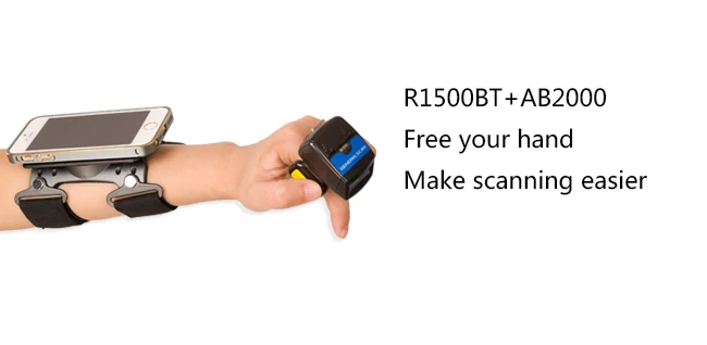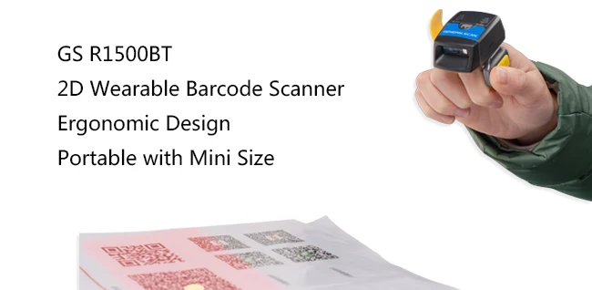 GS R1500BT-HW 2D wearable ring barcode scanner connect with the watchband armband AB2000,which designed for logistics and warehouse management.You can wear it on your finger to free your hand to handle materials, goods and packages while scanning, it is very comfortable to wear it in a whole working day, and can even improve 25%-30% overall productivity.